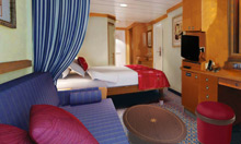 Spread out in the art deco elegance of your posh new home away from home while enjoying signature Concierge services. Concierge 1-Bedroom Suites with Verandah are classified as Categories 02A and 02B, and are located on Deck 8, Forward, Midship and Aft.Step into a space where attention to detail reigns: Original artwork, vintage Disney hallmarks, imported tile and burnished wood panels distinguish these expansive accommodations, allowing you and your family to unwind in resplendent comfort.Guests of our 1-Bedroom Suites have at their disposal:A separate bedroom1.5 bathrooms, including a main with a whirlpool tubA verandahLiving roomWet bar stocked with water and sodasWalk-in closetMedia library accessSpecificationsSleeps: 5Size: 614 sq. ft., including verandahRoom Configuration: 1 bedroom with queen bed; double sleeper sofa in living room; wall pull-down single bed in living room (in staterooms 8032, 8034, 8532 and 8534) or bedroom (in staterooms 8022, 8046, 8048, 8078, 8080, 8086, 8522, 8548 and 8582) in all but staterooms 8100, 8102, 8600 and 8602View: private verandah with floor-to-ceiling windowsAmenitiesCustom Premium Plush Euro-top mattressFrette® 300-thread-count, 100% cotton linensPremium Frette® bath towelsHigh-definition LCD flat-screen TVRefrigeratorIn-room safeHair dryerPhone with voicemail messagingIndividual climate controlCouch, desk and chairDining tableElemis® Body Exotics bath, shower and spa productsUpgraded AmenitiesWhile all Disney Cruise Line staterooms boast luxury amenities and world-class service, Guests of our Concierge Suites enjoy an expanded range of offerings:Down Duvets: Enjoy a superlative night’s sleep with the softness of genuine feather duvets, featured in Concierge main bedrooms.Guests of our Concierge Suites may choose from pillow options including hypoallergenic, feather and therapeutic memory foam.Personal Robe and Slippers: These plush comforts are yours to use for the duration of your cruise.Complimentary Wi-Fi Internet Service: Enjoy the Basic Surf Wi-Fi package for each Guest in the suite for the length of the voyage at no extra charge.VerandahAiry and private, this sanctuary is where you can watch the sun rise, bask in ocean breezes and enjoy your morning coffee or an evening nightcap.Your private balcony comes equipped with:Patio furnitureDeck lightingPlexiglas® or solid whitewall railingsChildproof locksExpanded Main Suite OptionFor larger parties, add an adjoining 1-Bedroom Suite with Verandah. On adjoining accommodations, the partition between verandahs can be opened to create a larger balcony for sharing, with access between rooms.Pre-Arrival ServicesOur signature Concierge services begin before you board the ship and continue throughout your vacation and beyond. Pre-reserve many of your onboard activities and services online, up to 120 days prior to your sail date. You may also inform the Concierge Team of your preferences 130 days prior to sailing, and they will make the bookings on your behalf when the 120-day booking window opens. Requests will be processed in the order in which they are received.A dedicated Concierge Agent is available Monday through Saturday, 8:30 AM to 5:30 PM. Call (866) 784-1654 for personalized assistance in planning every cruise detail, including:Port AdventuresReservations for Palo, spa treatments or nursery staysDining room seating requestsSpecial occasions and celebrationsAny other special requests, from pre-arrival to post-cruisePlease note that requests are confirmed at time of booking and cannot be guaranteed. Guests under 18 years of age must have parent or guardian permission to call. All experiences are subject to availability and may be subject to capacity restraints.Shipboard ServicesDuring your cruise, the benefits of signature Concierge service begin with priority check-in and boarding at a dedicated check-in station. Our onboard Concierge team will meet you at a private welcome reception—exclusive to Concierge Guests—and will be available to attend to your needs, questions and special requests. Enjoy assistance with:Reservations (Port Adventures, Palo dining, spa treatments and nursery stays)In-suite dining from our concierge in-suite dining menu. Dining reservation confirmations and changesPriority tendering in ports of callUpdates to your personal itinerarySpecial occasions and celebration planningExclusively for Concierge GuestsAs a Concierge Guest, you’ll enjoy exclusive access to dedicated areas on the ship, including the Concierge Lounge. Located amid the Concierge Suites on Deck 10, this stylish, modern retreat allows Guests to relax in quiet comfort, sip a cocktail (during select hours), access the Internet (fees may apply), watch news on a large-screen TV, and enjoy complimentary food and nonalcoholic beverages offered throughout the day.From the Lounge, Concierge Guests can access a sun deck via a private entrance. Soak up the sun at this VIP onboard oasis and savor tranquil breezes in cushioned lounge chairs.
